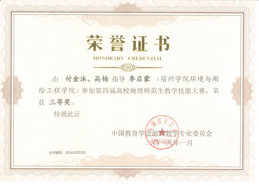 参加第四届高校地理师范生教学技能大赛荣获三等奖